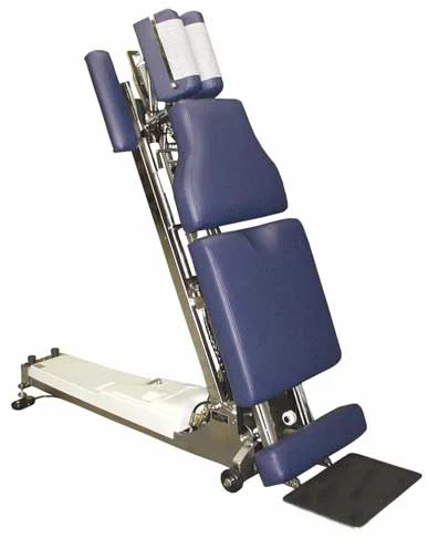 The Lloyd Galaxy Hylo is an industry workhorse in the Chiropractic profession. This table features a hydraulic tilt from horizontal to 70 degrees, with adjustable speed and hydraulic extension retraction, deluxe adjustable headpiece, adjustable chest piece with breakaway feature, adjustable pelvic, and tilt safety switch. New upholstery (buyer chooses desired color from our inventory) will be installed before final sale.