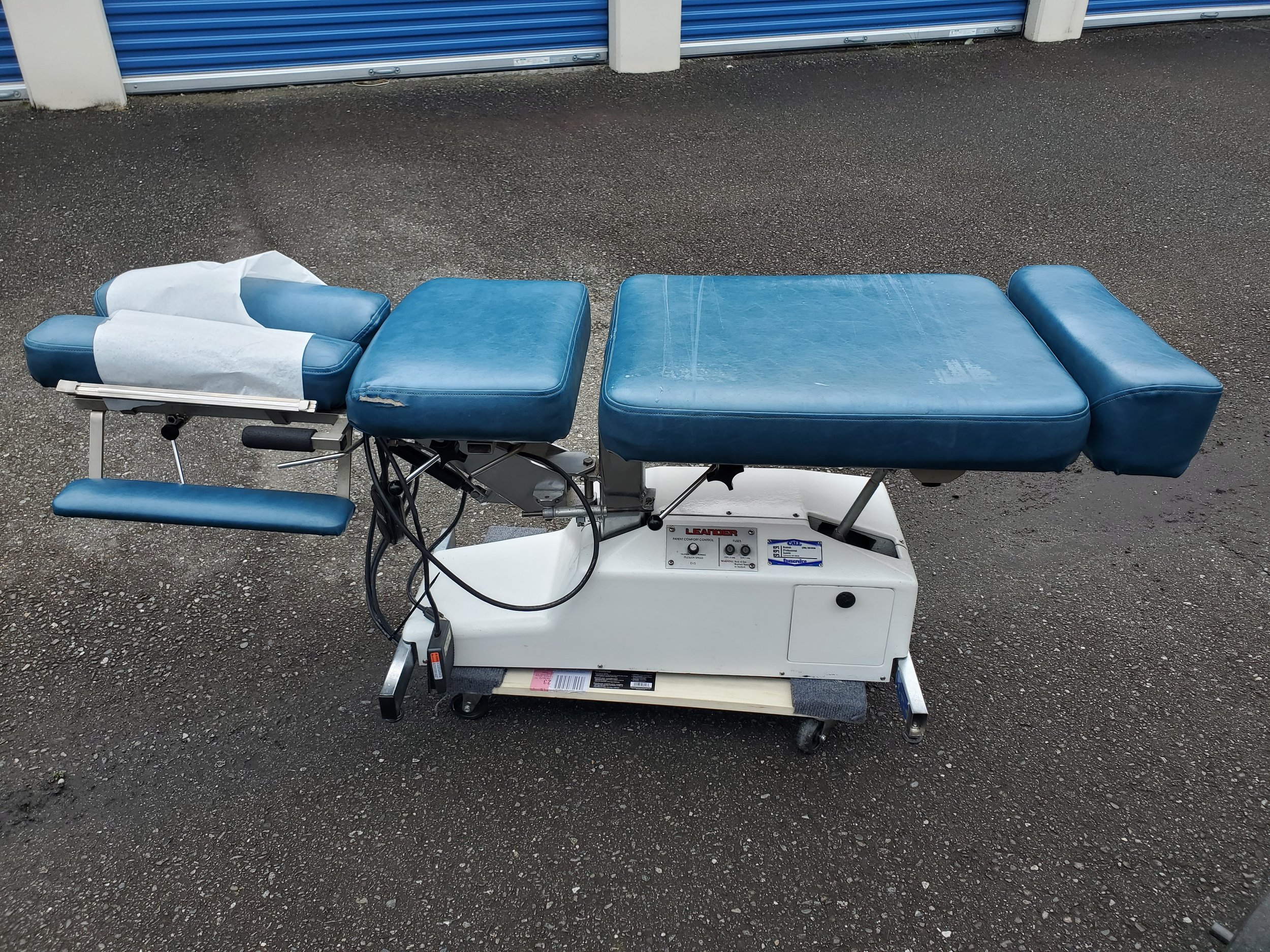 Selling a used Leander 800 flexion/elevation table with the following features and fully reconditioned by us, which includes; part replacements where necessary, painting, reupholstery, and a full tune up from top to bottom. Free local delivery to the Seattle-Tacoma area