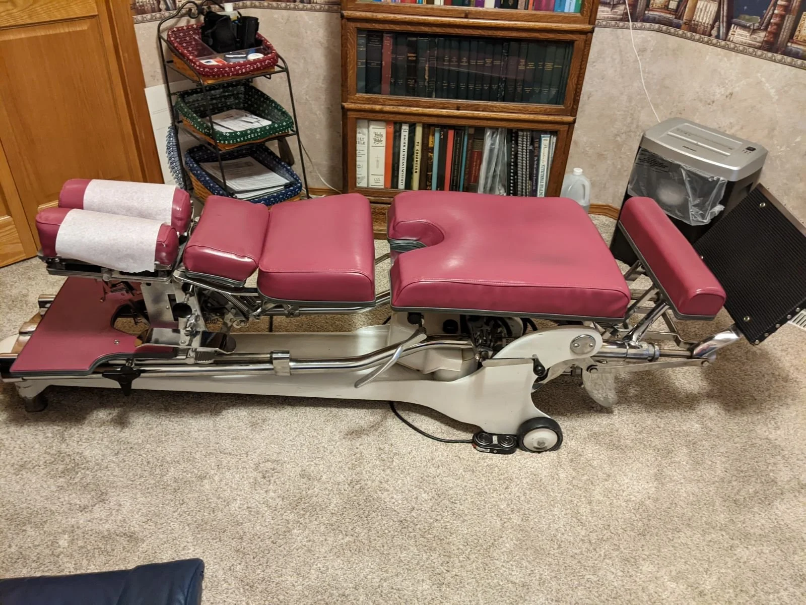 We’re selling a Titan automatic flexion chiropractic table. This table is in great condition and features a tilting, cervical headpiece, thoracic drop and pelvic drop! The upholstery will be changed before final delivery (buyer's color choice). It has a stationary height of approx 23". Other features include: variable flexion speed and depth, breakaway thoracic, arm rests, paper holder & cut off bar,, and ankle strap. The table will be cleaned and inspected to ensure proper functionality before delivery. This table comes with a 6 month warranty and free delivery within the greater Seattle area. Please contact me for additional information. Thanks for looking!
